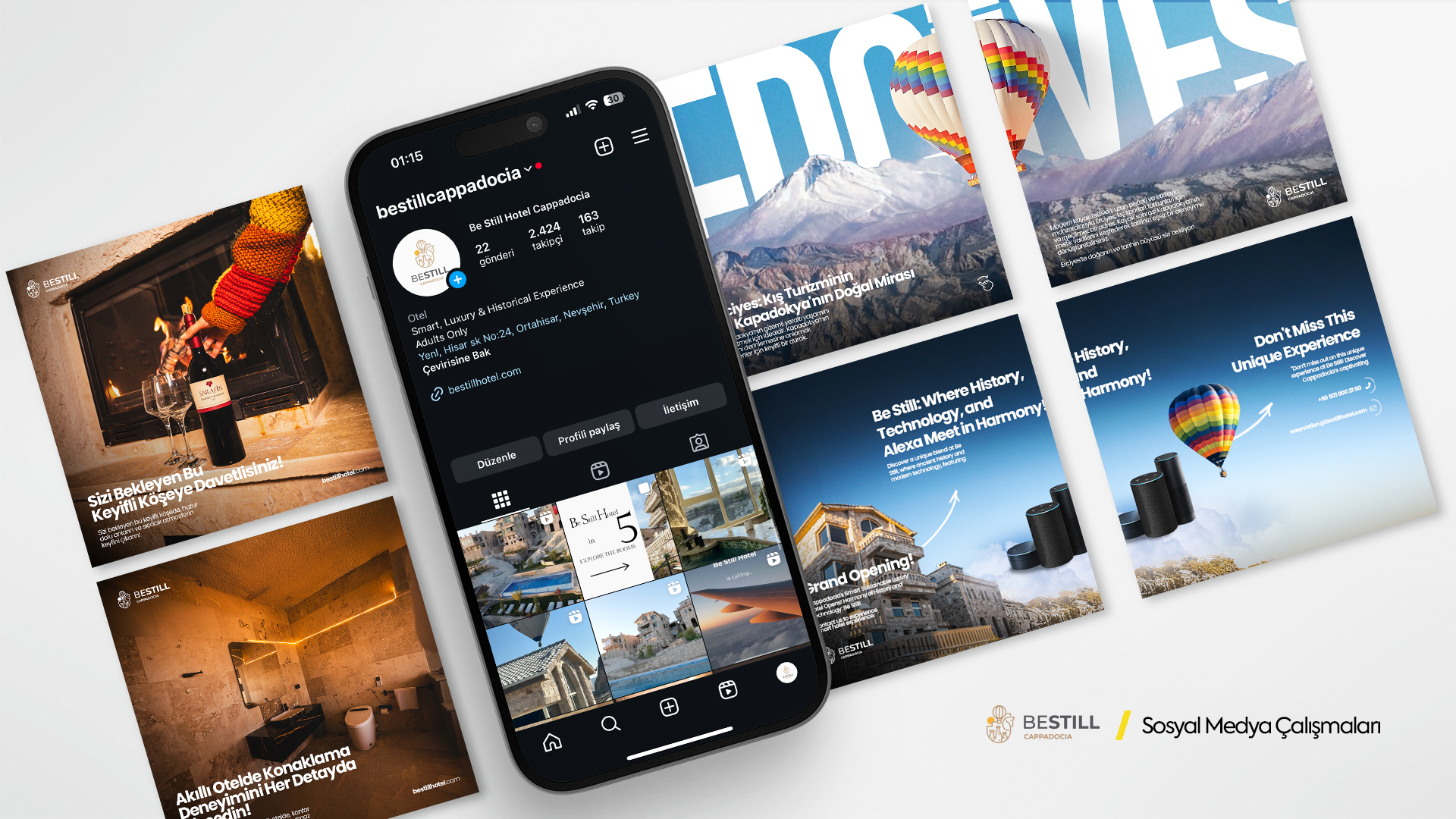 Vision360 Ajans olarak, Be Still Hotels’in dijital dünyadaki etkisini artırmak için sosyal medya yönetimi, prodüksiyon, grafik tasarım ve marka danışmanlığı hizmetleri sunduk. Yaratıcı ve stratejik yaklaşımlarımızla Be Still Hotels’in marka kimliğini güçlendirdik, sosyal medyada etkili bir görünürlük sağladık ve konuklarıyla güçlü bir iletişim kurmasını destekledik. Be Still Hotels’in sunduğu konforu, zarafeti ve misafir memnuniyetini, güçlü bir dijital varlıkla taçlandırdık.