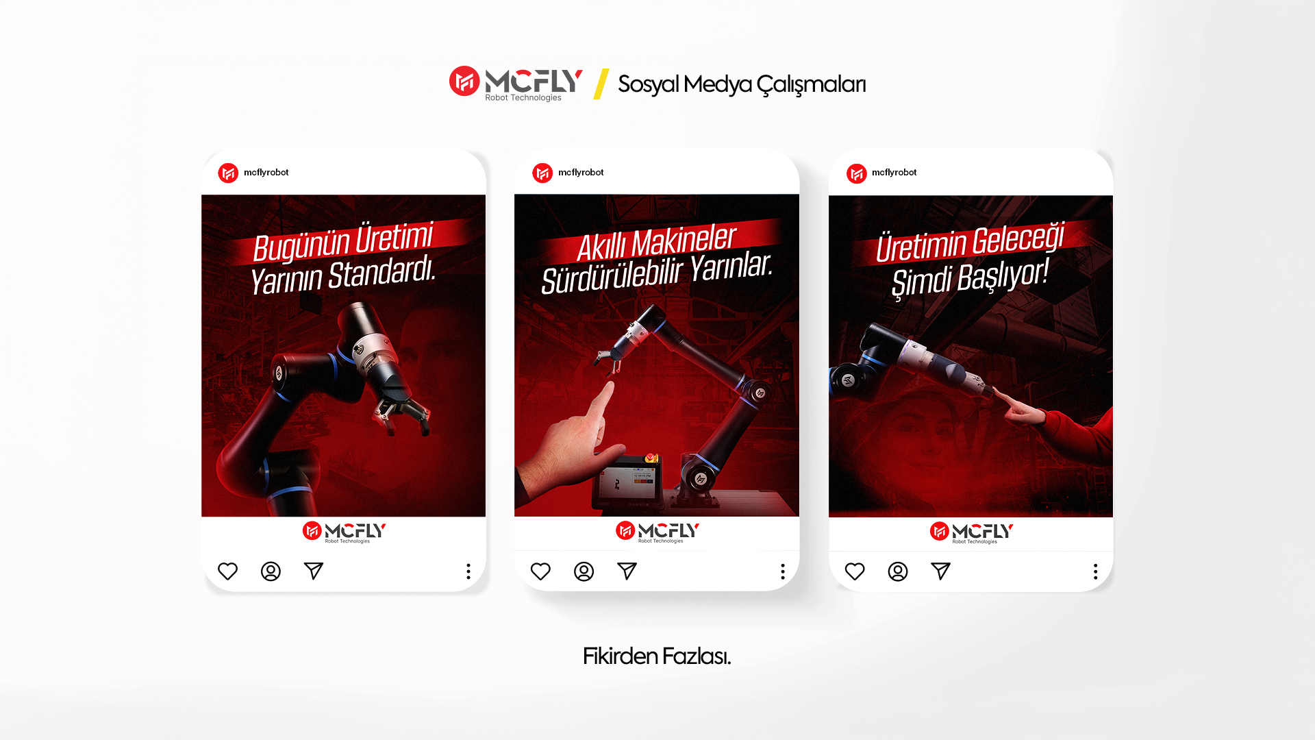 Vision360 Ajans olarak, McFly Robot’un dijital dünyadaki etkisini artırmak için sosyal medya yönetimi, prodüksiyon, grafik tasarım ve marka danışmanlığı hizmetleri sunduk. Yaratıcı ve stratejik yaklaşımlarımızla McFly Robot’un marka kimliğini güçlendirdik, sosyal medyada etkili bir görünürlük sağladık ve robotik çözümlerini geniş kitlelerle buluşturmasını destekledik. McFly Robot’un yenilikçi teknolojilerini, mühendislik gücünü ve geleceğe yön veren vizyonunu, güçlü bir dijital varlıkla taçlandırdık.