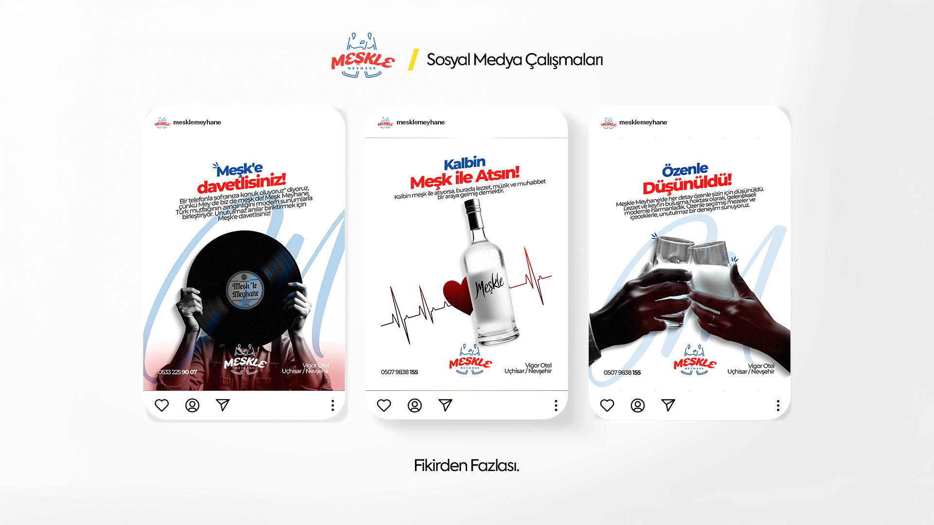 Vision360 Ajans olarak, Meşkle Meyhane’nin dijital dünyadaki etkisini artırmak için sosyal medya yönetimi, prodüksiyon, grafik tasarım ve marka danışmanlığı hizmetleri sunduk. Yaratıcı ve stratejik yaklaşımlarımızla Meşkle Meyhane’nin marka kimliğini güçlendirdik, sosyal medyada etkili bir görünürlük sağladık ve lezzetlerini geniş kitlelerle buluşturmasına destek olduk. Meşkle Meyhane’nin misafirlerine sunduğu keyifli atmosferi ve özgün lezzetlerini, güçlü bir dijital varlıkla taçlandırdık.